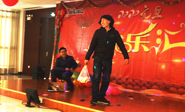歡樂匯以“開球見喜”為主線,員工上場開球以隨機(jī)的形式抽取,開小球表演簡單的小節(jié)目,無需準(zhǔn)備,簡單新穎,比如,員工劉壽山開球開出——走模特步,讓他頗為難為情,跟著女主持一起模仿模特步,引得員工笑顏頓開;開大球,員工表演各種節(jié)目。匯場上,新年的歡樂氛圍火爆,員工舒心快樂的表演節(jié)目,王旭東、徐可的《沙漠駱駝》,以明快的節(jié)奏激活了歡悅的氛圍;杜杰的幽默表演——《中國功夫》,以粗狂的武術(shù),給大家?guī)砹苏鸷常痪狭值囊磺?dú)奏《毛主席話兒記心上》,給大家?guī)Щ氐矫珷敔敃r(shí)代的回憶中去;李寧演唱的《在哪遙遠(yuǎn)的地方》,可謂聲情并茂,唱出了遙遠(yuǎn)地方姑娘的美麗與善良;陳爍帶來的魔術(shù)表演,新穎活躍,調(diào)節(jié)了匯場的氛圍,給大家新奇的感覺,也展現(xiàn)了陳爍機(jī)智和風(fēng)趣的個(gè)性;幽默滑稽的小品《如此問價(jià)》,給大家?guī)砹藲g悅,也將元旦佳節(jié)的喜慶氛圍推上了新的高潮;員工顏彬的一曲《家住臨沂》,道出了沂蒙人民熱愛家鄉(xiāng)的昂揚(yáng)情結(jié);孟祥松、盧元福等員工的大合唱《我的未來不是夢》,唱出了員工的心聲,展露出國眾員工熱愛生活,追求美好前程的精神面貌;趙桂基、高珩超表演的相聲《求職趣事》讓匯場的氛圍更加火爆。