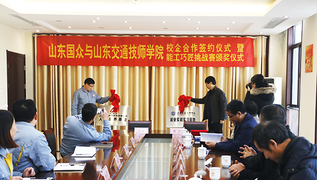 儀式上,公司總經(jīng)理謝文成與山東交通技師學院副院長任東共同授牌揭牌。山東國眾為山東交通技師學院就業(yè)實訓實習基地,山東交通學院為山東國眾人才培養(yǎng)基地。
